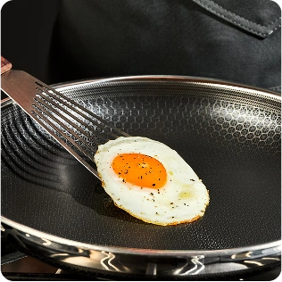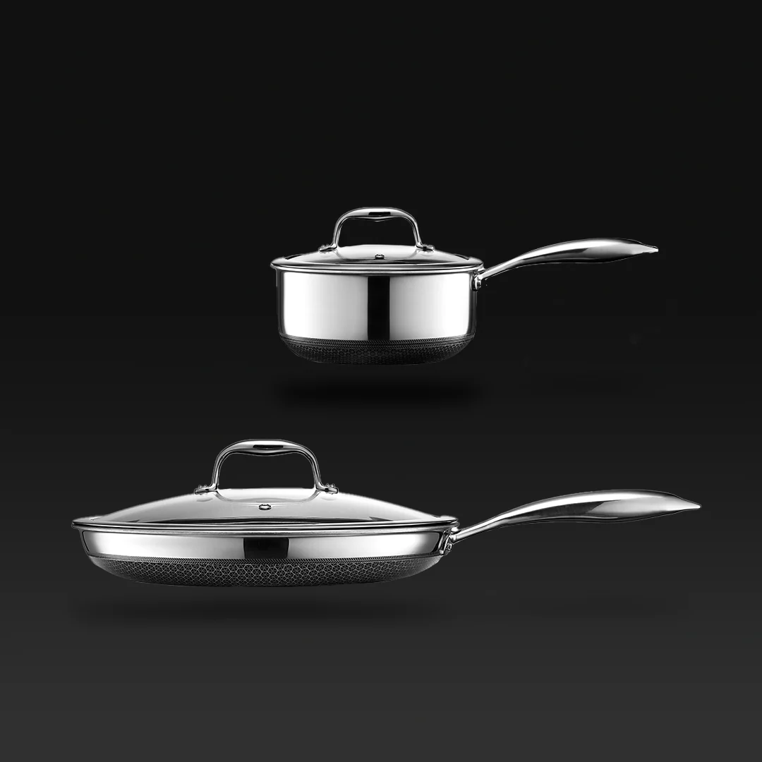 "I use the pans at home, and the combination of stainless steel and non-stick functionality is amazing. It's highly versatile and cooks exceptionally well."