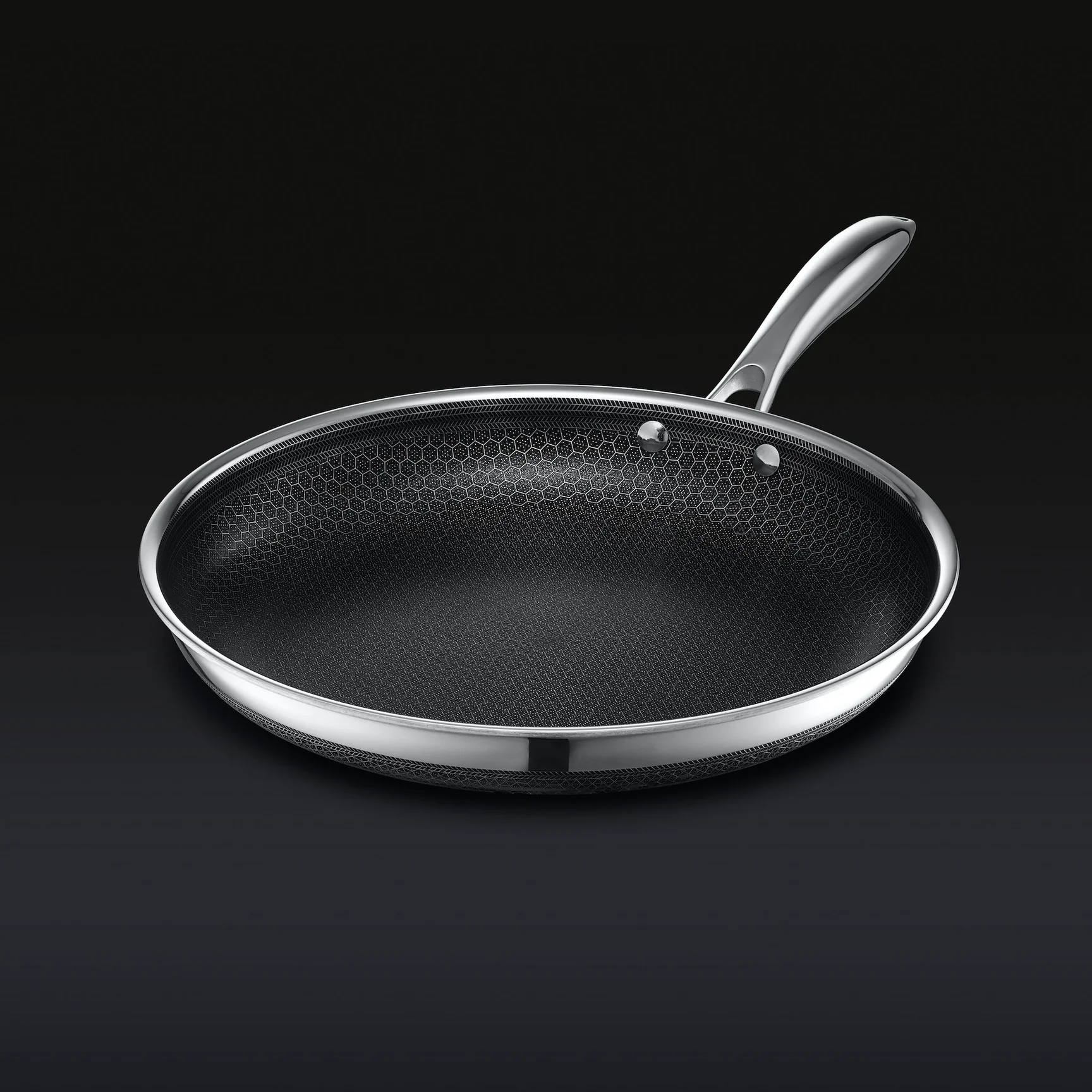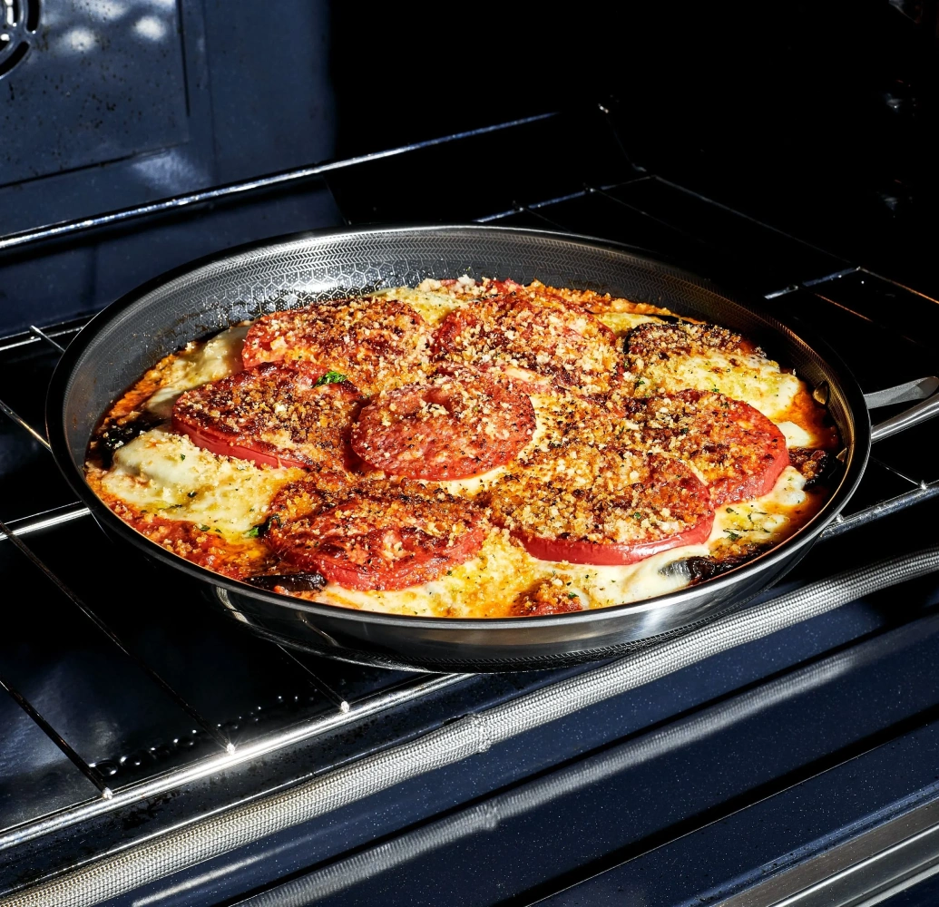 It combines the performance of stainless steel, the durability of cast iron, and the convenience of nonstick - all in one stunning hybrid surface.