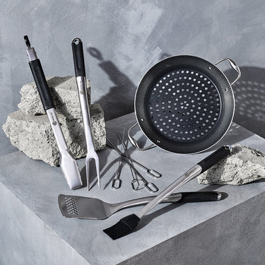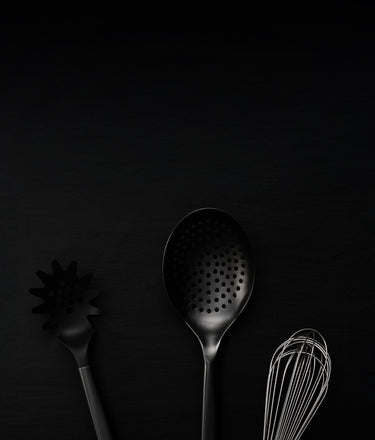 It’s time to finally upgrade that mishmash of kitchen utensils you’ve been using forever. This set of tools specifically designed for our cookware–from a big basting spoon to a nimble fish spatula–features high-grade stainless steel, high temperature–resistant silicone, top-notch craftsmanship and a PVD* gunmetal finish.
