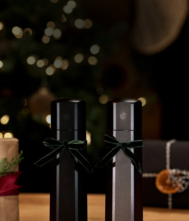 Our HexMill grinders are culinary game changers. Thanks to a high-efficiency burr mechanism, they deliver more seasoning per crank than standard mills. This exclusive bundle includes our original 9-inch HexMill Salt and Pepper Grinder Set as well as our dining-sized HexMill Tabletop Grinder Set.