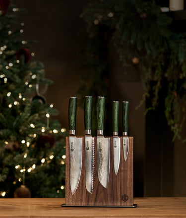 Give the gift of easy prep work with super-sharp Japanese Damascus steel knives and boards that are beautiful and durable.