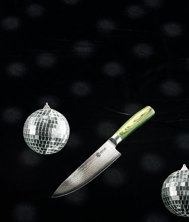 Our knives turn heads like a fab New Year’s outfit. Japanese Damascus steel blades and walnut boards are both stunning and durable.