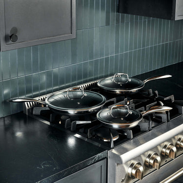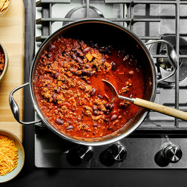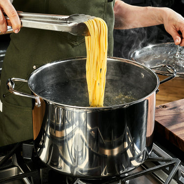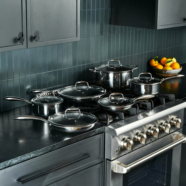 Our best-selling set includes the pots and pans you’ll use every single day. These are the three pans that home cooks reach for the most–whether scrambling eggs for two, sizzling up dinner for four, or searing chops. Our pots are perfect for hot chocolate, mac ‘n cheese, or a big, robust braise or soup.