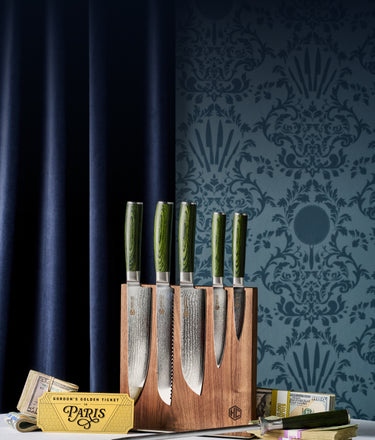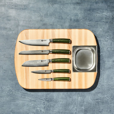 Make everyday prep work much easier with super-sharp, durable Japanese Damascus steel knives and our stunning walnut boards.