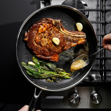You deserve cookware that sears wonderfully and cleans up in a snap. Good thing our Hybrid pots and pans do both.